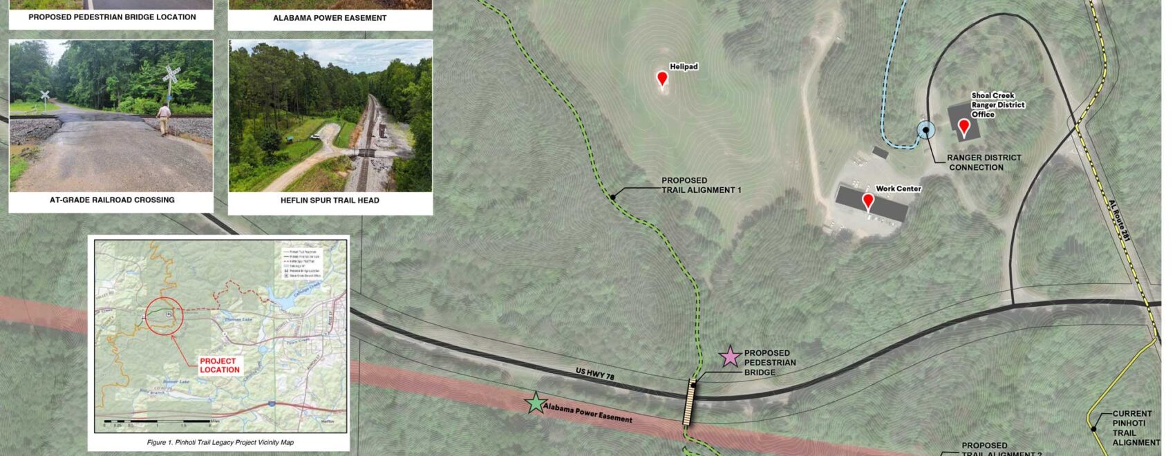 We want to hear your thoughts on a proposed improvement to the Pinhoti Trail in Alabama’s Talladega National Forest! This project focuses on a half-mile section of the trail near Heflin in Cleburne County. Right now, this stretch follows State Route 281 and crosses the U.S. Highway 78 along an exposed road shoulder.